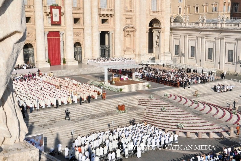 Thánh lễ do Đức Thánh Cha chủ sự, được đồng tế bởi các tân Hồng y, quy tụ khoảng 25000 tín hữu, trong đó có 464 tham dự viên Thượng hội đồng.