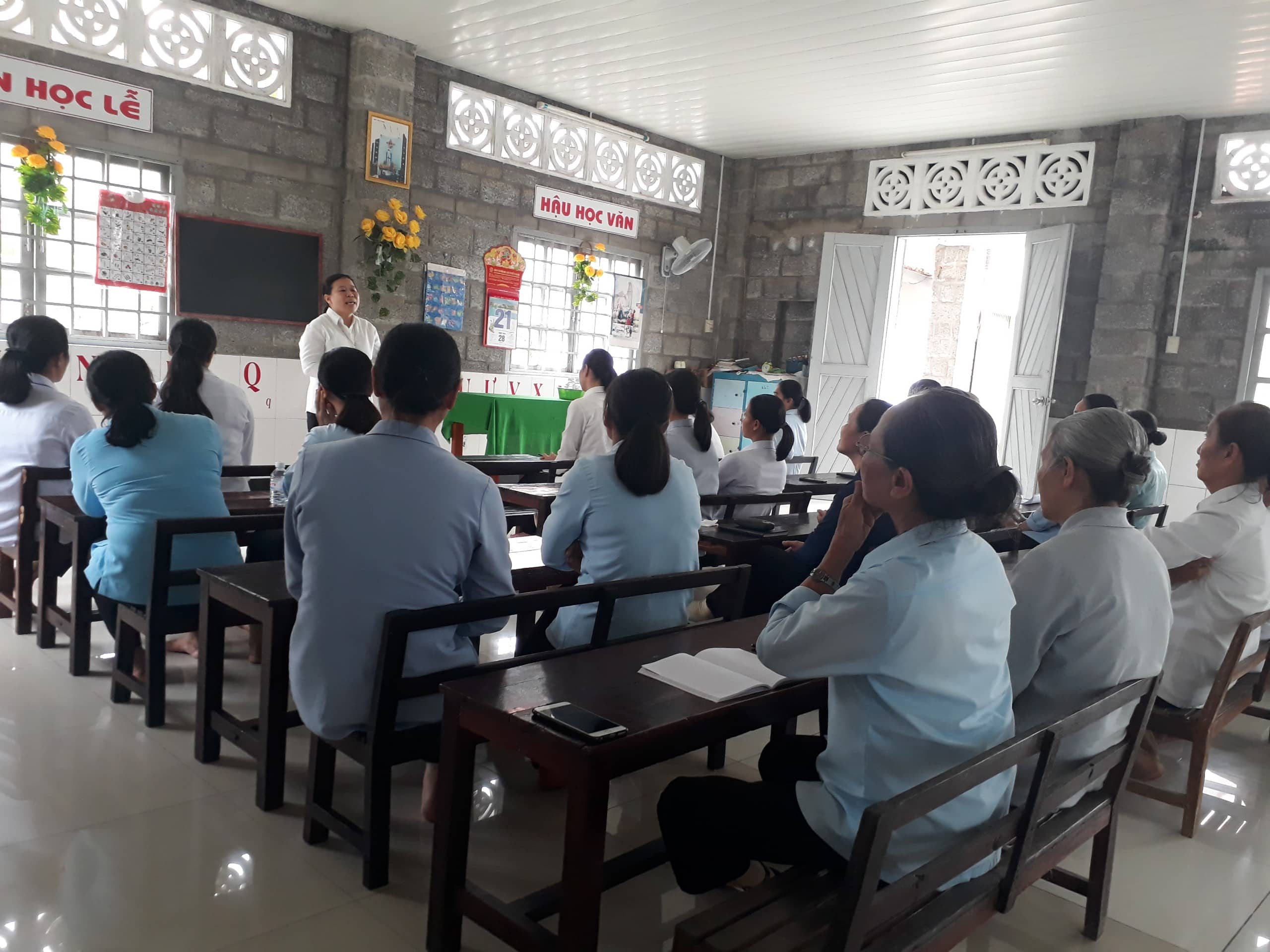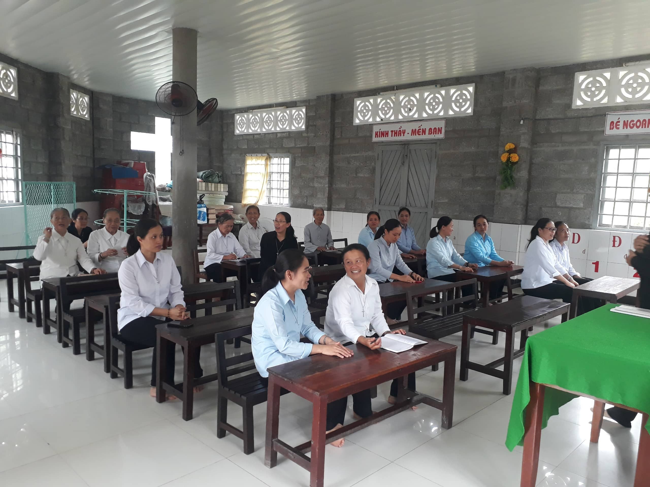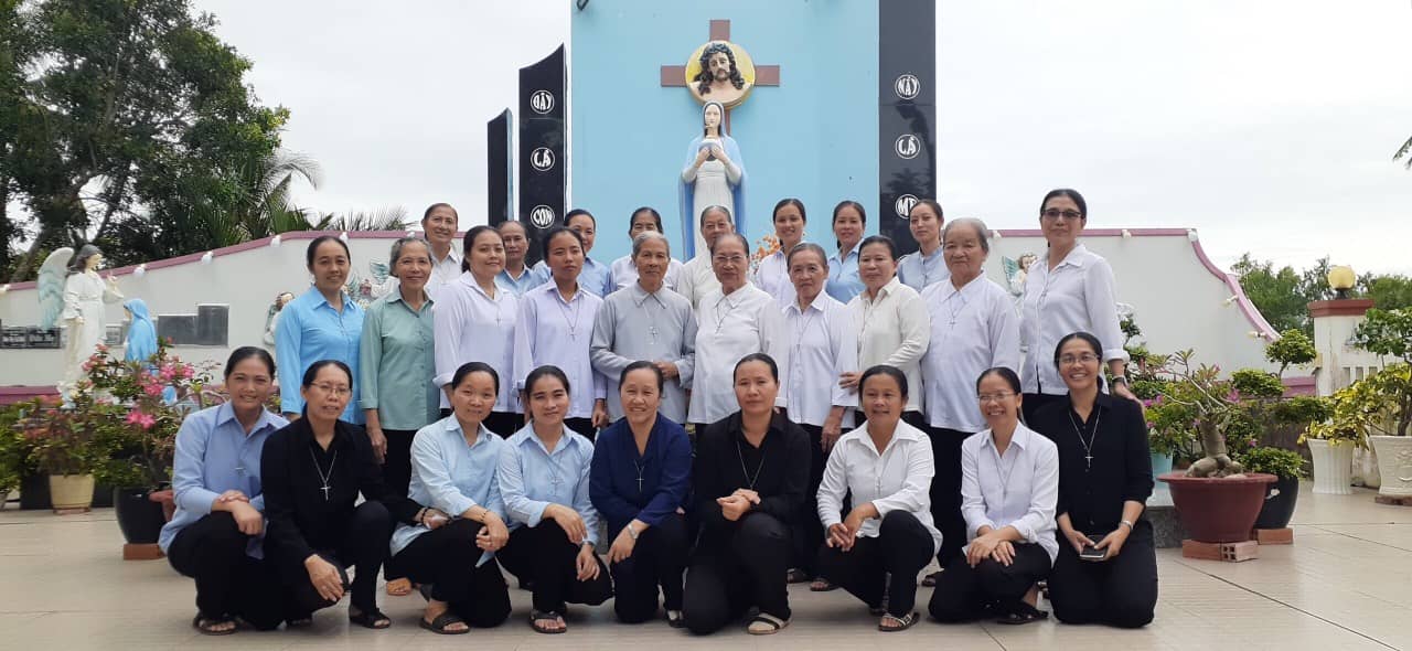 Với thời tiết se lạnh của những ngày chớm đông, vào ngày 21/11 vừa qua, quý Chị Em vùng Trà Vinh cùng hẹn nhau về thăm Mẹ và thăm nhau tại cộng đoàn Cái Đôi. Từ xa, con thấy thấp thoáng bóng Mẹ trong màu áo xanh tươi đứng chờ mà trong lòng thấy ấm áp, bình an đến lạ. Tới nơi rồi! Quý Dì lớn nhỏ chào nhau bằng nụ cười tỏa nắng. Bởi vậy mà hôm ấy mặt trời đã nhường hết sự rực rỡ cho quý Dì rồi, dẫu cuộc sống không thiếu những khó khăn, nhưng khi gặp nhau chị em đã gạt sang một bên để dành cho nhau những gì tốt đẹp nhất và không gì khác hơn là nụ cười, là sự niềm nở trong tình huynh đệ thân thương chân thành. Đặc biệt, sự đón tiếp ân cần, thân tình của Dì Tám Sa và năm chị em ở tại cộng đoàn Cái Đôi làm cho con có cảm giác là người nhà, thật sự rất ấm áp.