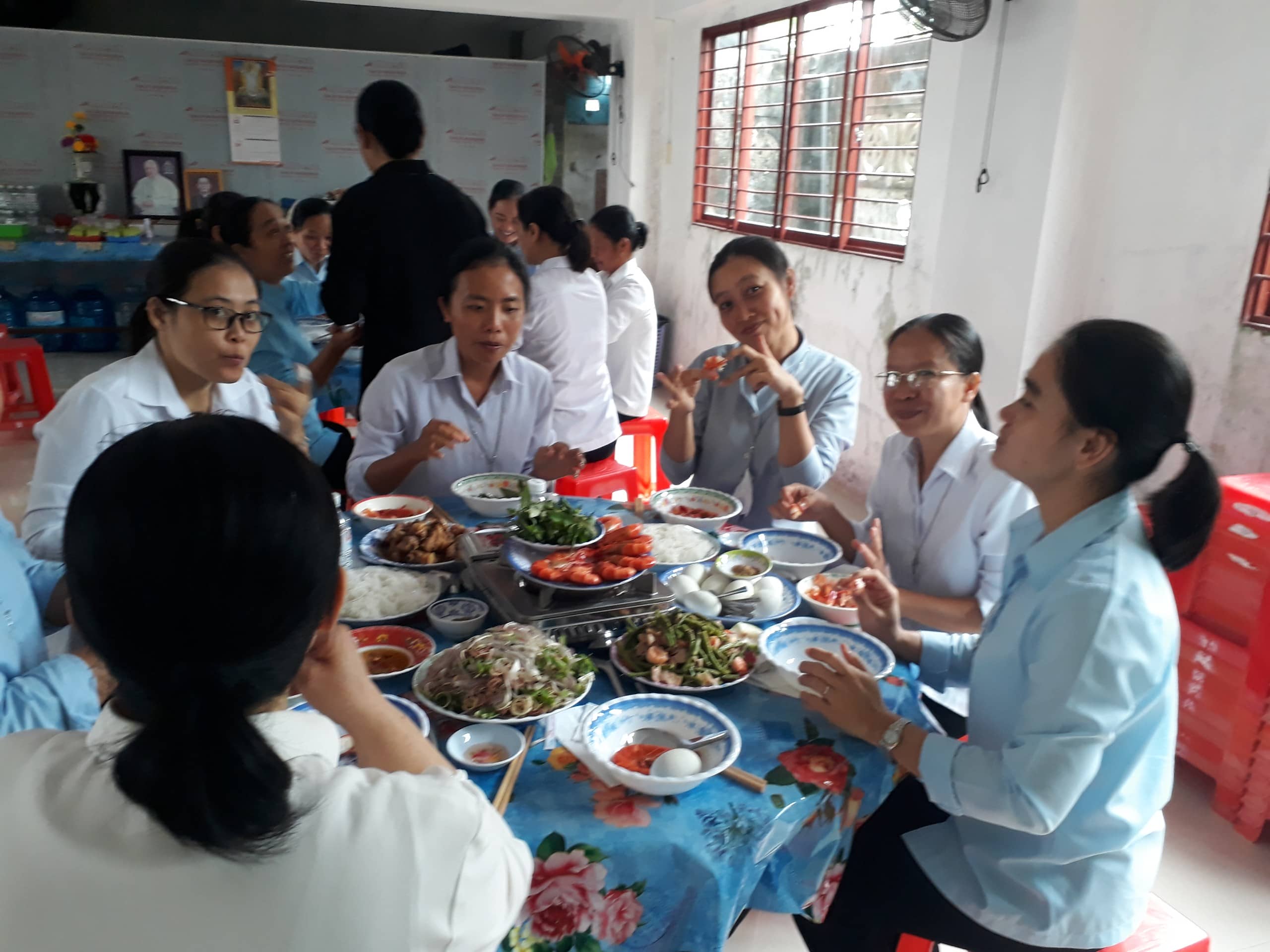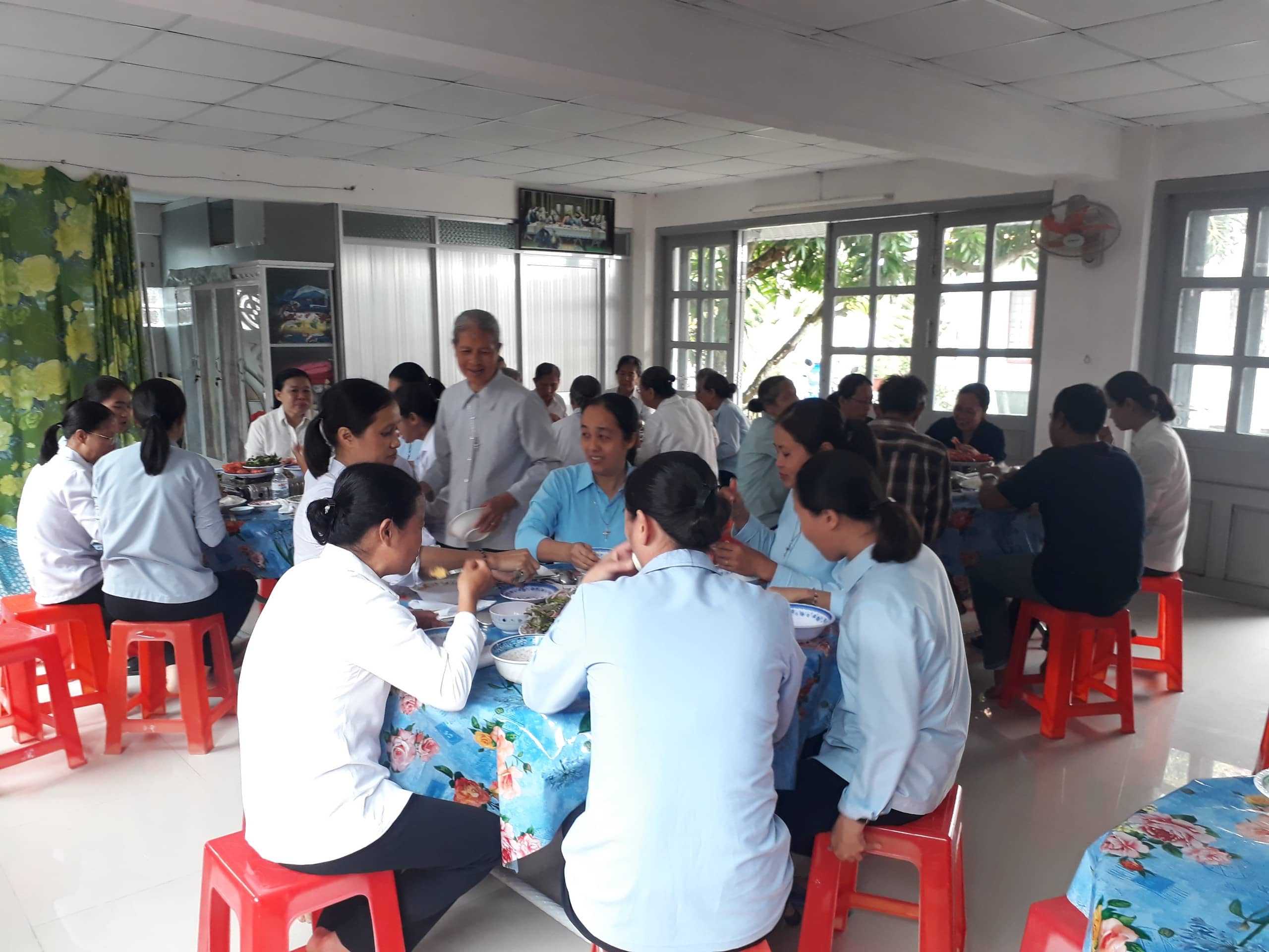Kết thúc buổi họp mặt là buổi cơm trưa “đậm bạc” với rất nhiều đặc sản “nhà làm “ của chị em cộng đoàn Cái Đôi. Con xin mạn phép dùng từ đậm bạc vì được sự hỗ trợ rộng rãi của Cha Sở họ đạo Cái Đôi. Ai cũng tấm tắc khen ngon, không hẳn ngon vì đầu bếp giỏi mà còn ngon vì chị Trưởng cộng đoàn Cái Đôi là Dì Tám Sa rất tuyệt vời còn các Chị Phó cũng tuyệt vời không kém.