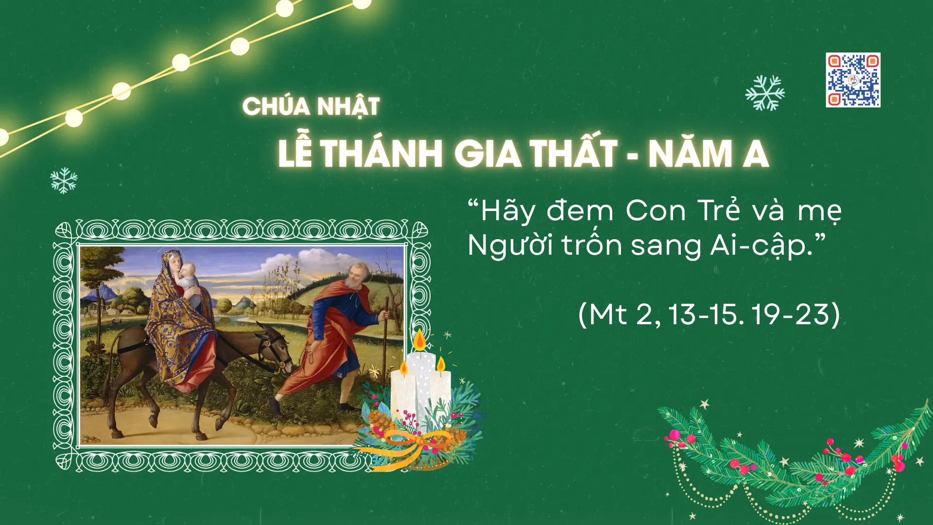 Đó là bài hát Ba Ngọn Nến Lung Linh của tác giả Ngọc Lễ gợi lại trong lòng chúng ta hình ảnh một mái ấm gia đình, nơi có cha, có mẹ và con cái cùng chung sống trong yêu thương. Và Gia đình là không gian của sự chở che, là nơi con người tìm thấy bình an giữa những lo toan của cuộc sống. Cũng như trong Tin Mừng hôm nay, thánh Matthêu cũng cho chúng ta chiêm ngắm một gia đình rất đỗi bình dị nhưng tràn đầy tình yêu và sự gắn bó, đó chính là gia đình Thánh Gia: thánh Giuse, Đức Maria và Hài Nhi Giêsu.