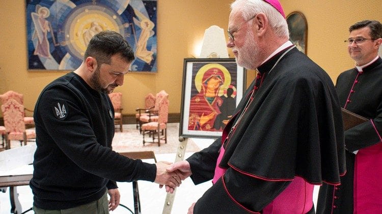 Ông Zelensky cũng đã hội đàm với Đức Hồng y Quốc vụ khanh Pietro Parolin và với Đức Tổng Giám mục Paul Gallagher, Ngoại trưởng Toà Thánh.