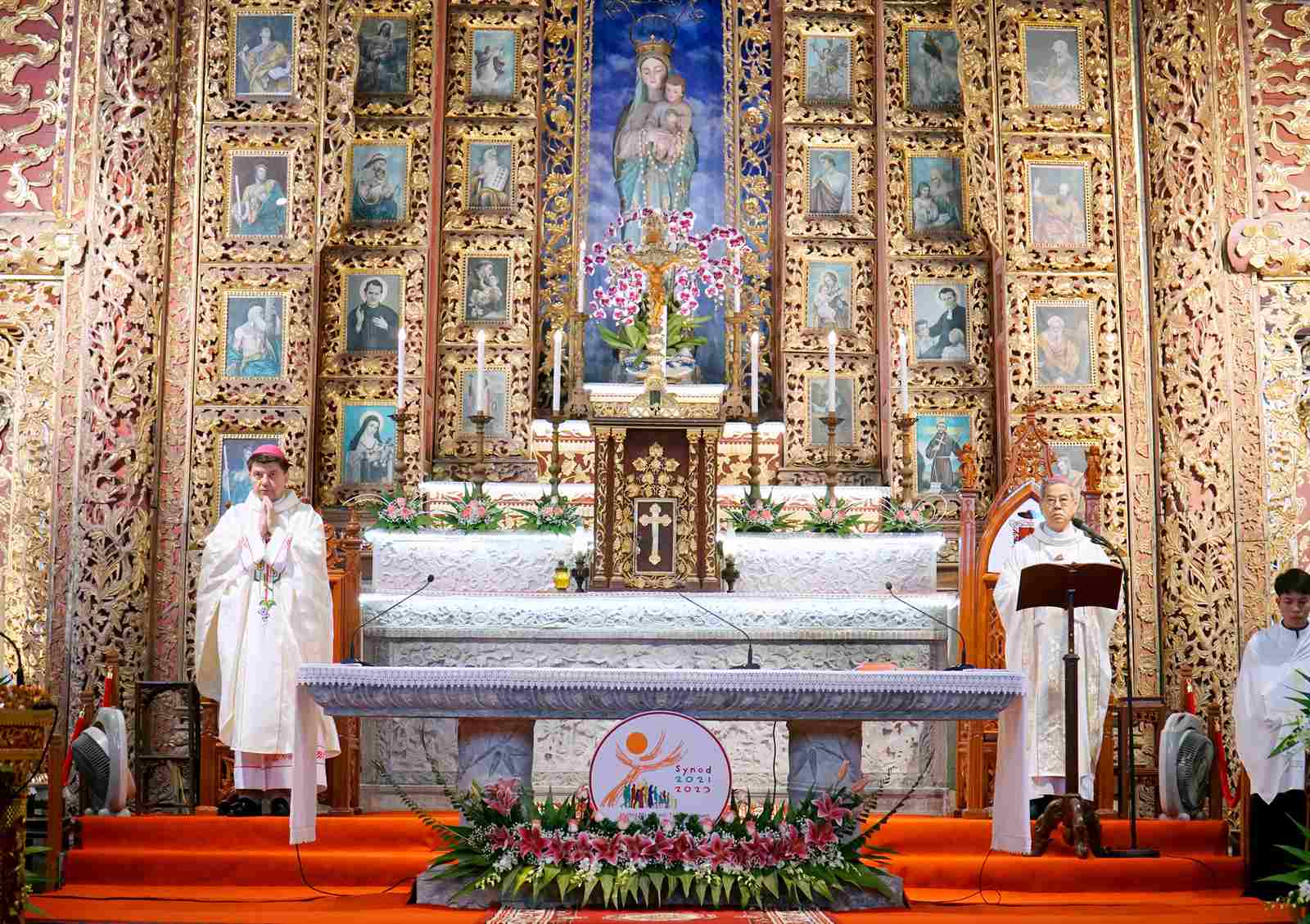 WGPPD (15.11.2022) – Như tin đã đưa, nhân dịp tham dự Đại hội Liên hiệp Bề trên thượng cấp đang diễn ra tại Phát Diệm, Đức Tổng Giám Mục (TGM) Marek Zalewski, Đại diện Tòa thánh không thường trú tại Việt Nam, đã đến thăm và dâng Thánh lễ tại nhà thờ chính tòa Phát Diệm vào lúc 17g00, ngày 15.11.2022. Đồng tế với Đức TGM Marek, có Đức TGM Giuse Nguyễn Năng, Giám quản Tông tòa Phát Diệm, quý cha Đại diện, quý Cha lân cận xứ Chính tòa, cùng với sự hiện diện rất đông đảo của các nữ tu Hội Dòng Mến Thánh Giá Phát Diệm và anh chị em giáo dân.
