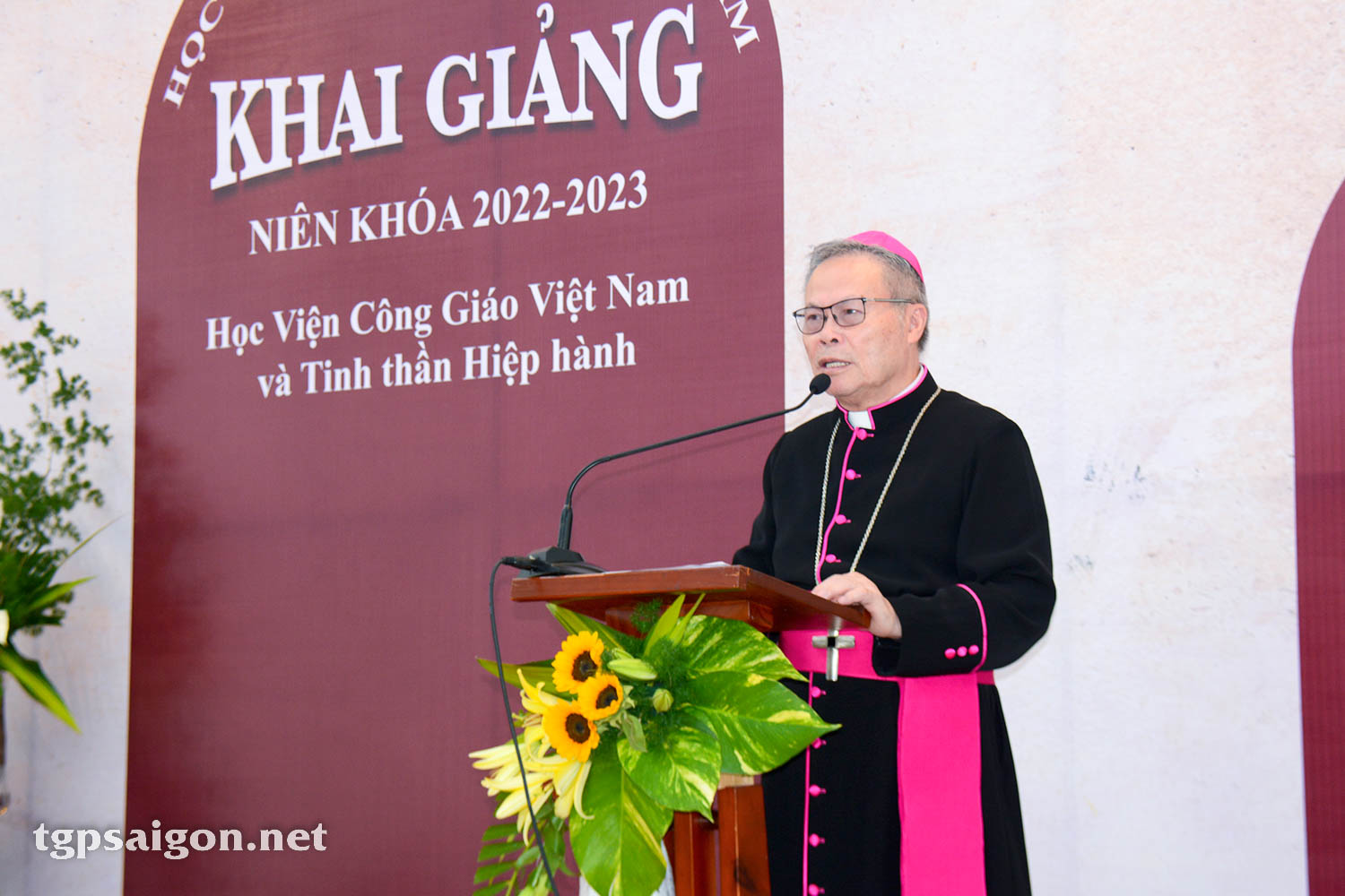 Đại diện HĐGMVN, Đức TGM cảm ơn tất cả những người đã đóng góp cho sự hình thành và phát triển HVCGVN. Ước mong Học viện ngày càng phát triển hơn nữa theo thời gian.