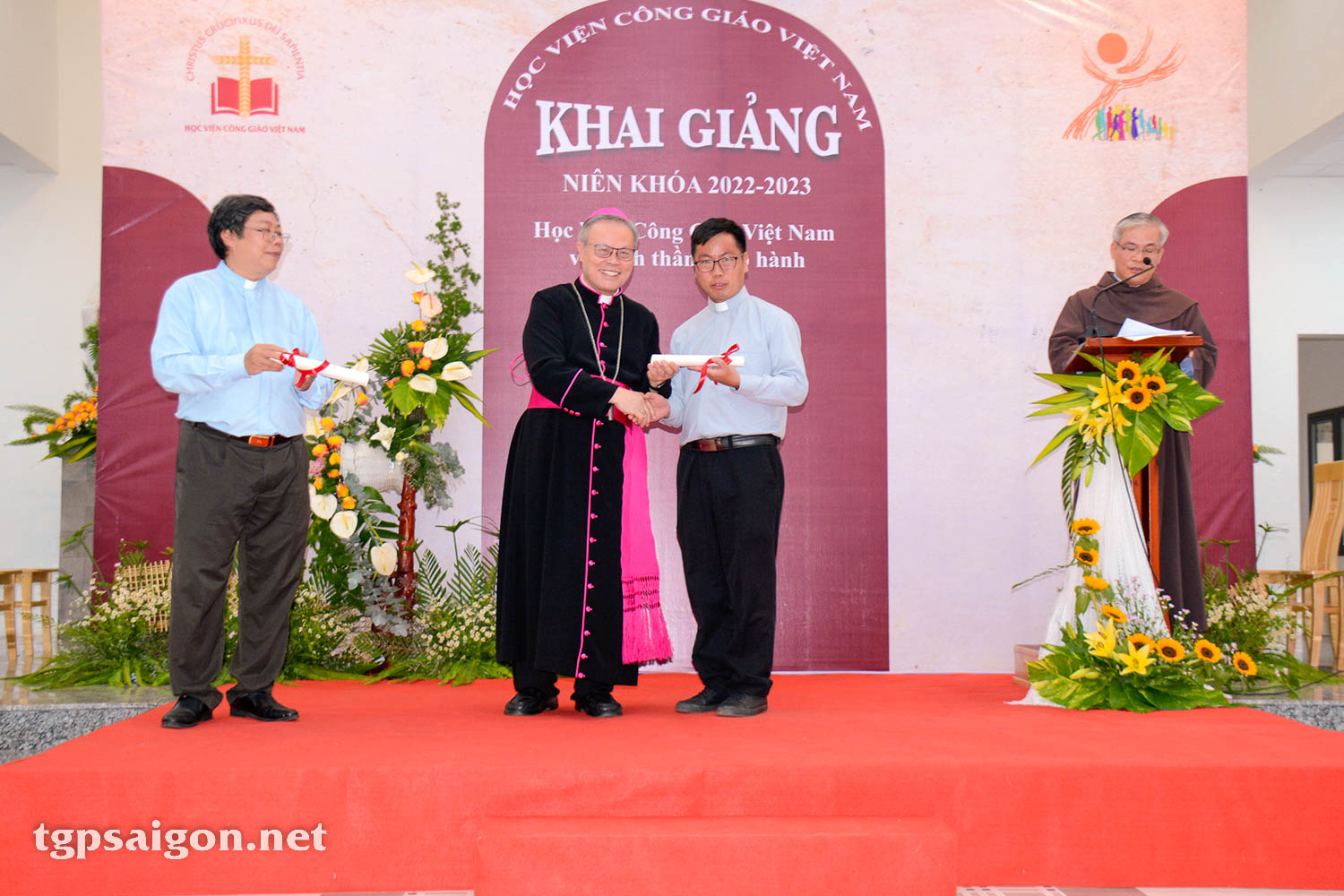 TGPSG – Lúc 8g30, ngày 13-9-2022, Học Viện Công giáo Việt Nam đã tổ chức khai giảng năm học 2022-2023; trao chứng chỉ cho 63 sinh viên khoa Cử nhân Thần học đã hoàn thành giai đoạn Triết học, và Thánh lễ tạ ơn được cử hành lúc 10g30 tại Học viện, tọa lạc số 25 đường số 9, Kp.1, P. Bình Thọ, Thủ Đức – Tp HCM