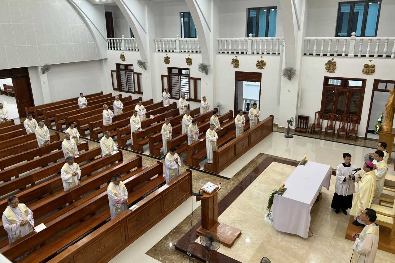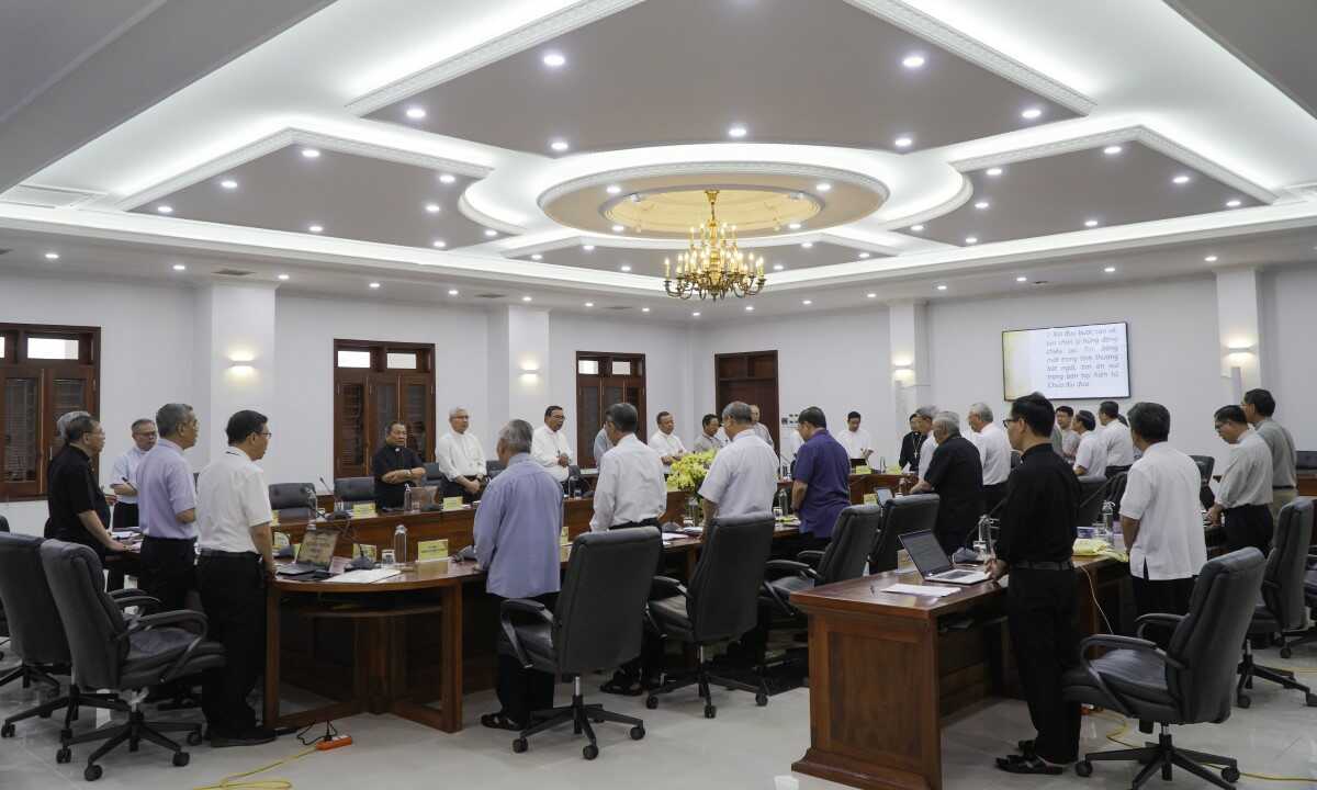 WHĐ (20.04.2023) – Ngày làm việc thứ ba của Hội nghị được bắt đầu với cử hành Phụng vụ Giờ Kinh Sáng, tiếp đến là Thánh lễ do Đức Cha Giuse Đỗ Mạnh Hùng, Tổng Thư ký Hội đồng Giám mục Việt Nam (HĐGM) chủ tế. Trong 4 phiên họp của ngày hôm nay, Hội nghị đã dành thời gian để lắng nghe các Đức Cha trình bày và góp ý các đề tài liên hệ.