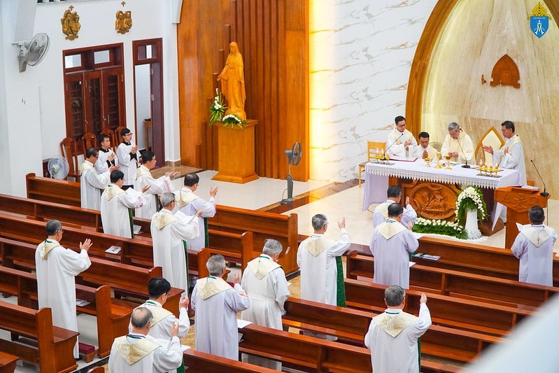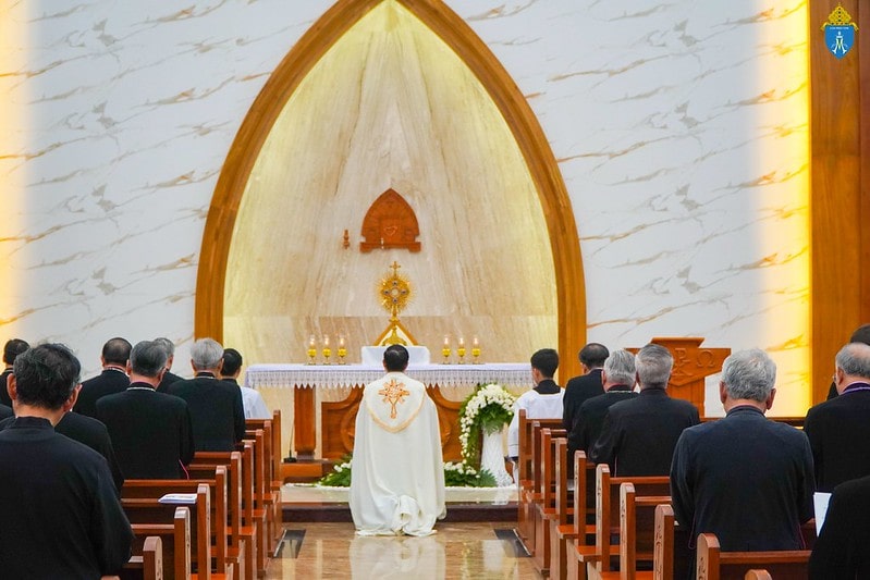 WHĐ (18.04.2023) – Ngày Hội nghị thứ nhất, 18 tháng 4, của Hội đồng Giám mục Việt Nam (HĐGM) được bắt đầu lúc 5g30 sáng với cử hành Phụng vụ Giờ Kinh Sáng, tiếp đến là Thánh lễ do Đức Tổng Giám mục Giuse Nguyễn Năng, Chủ tịch HĐGM, chủ tế.