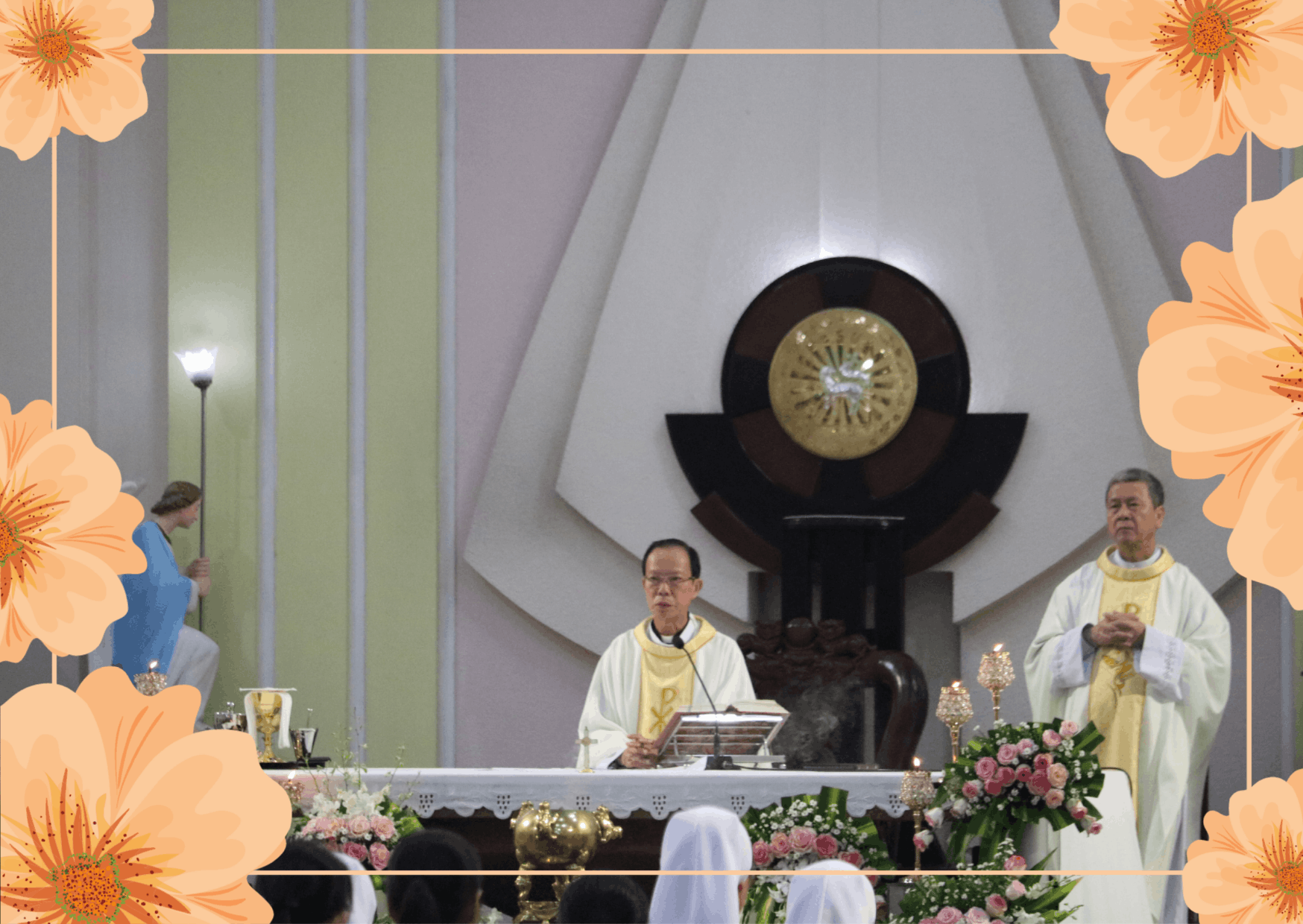 Đúng 5g00, Thánh lễ được cử hành do cha Tuyên Úy Gioan Baotixita Lê Đình Bạch chủ tế, cùng với cha Anselmô Nguyễn Hải Minh đồng tế. Cộng đoàn đã sốt sắng hiệp thông, kín múc ân sủng từ nguồn mạch Thánh Thể.