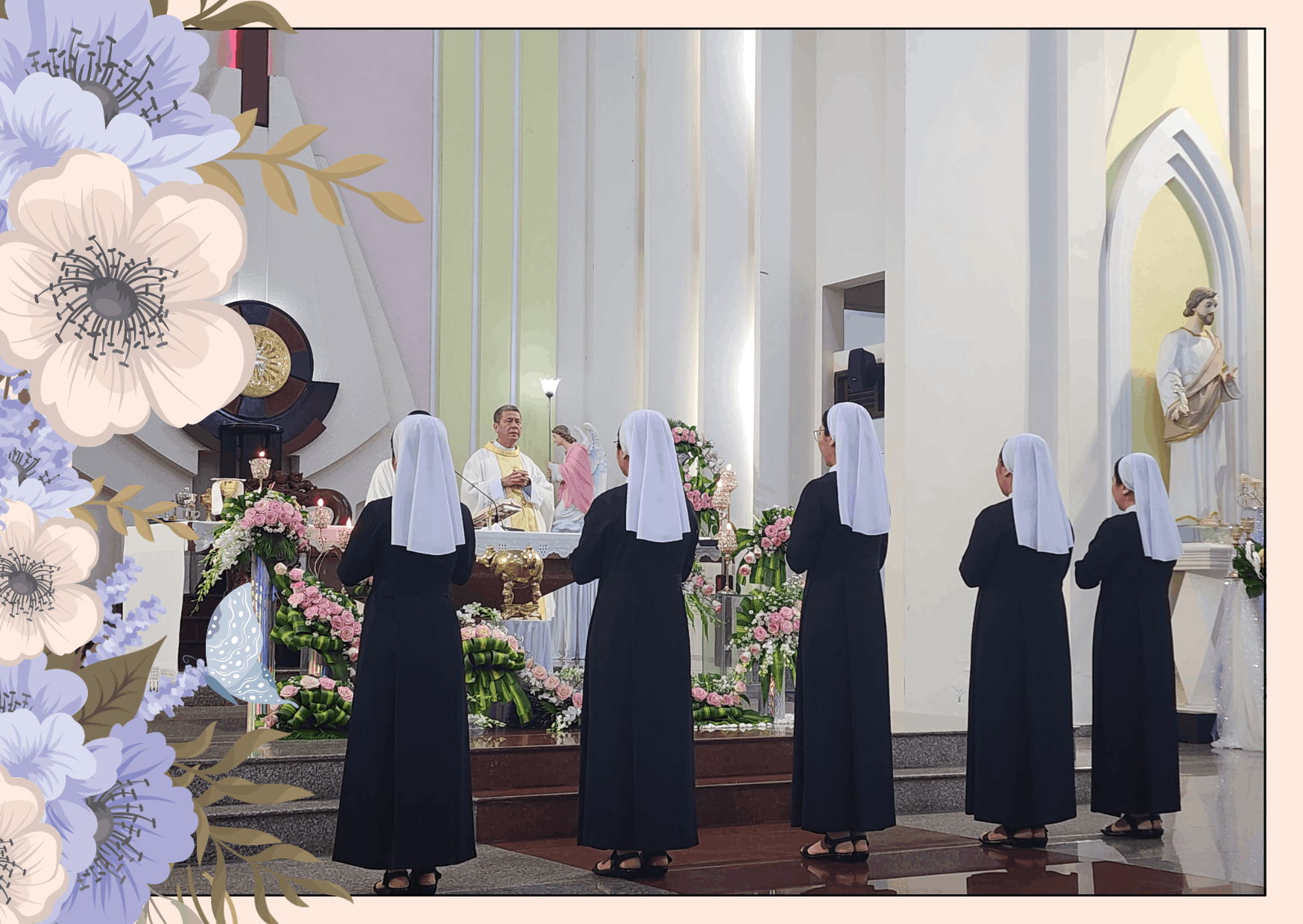 Trong bài giảng, cha Tuyên Úy mời gọi mỗi chị em noi gương Thánh Giuse – mẫu gương của sự lắng nghe, tín thác và can đảm thi hành thánh ý Thiên Chúa trong chương trình cứu độ.