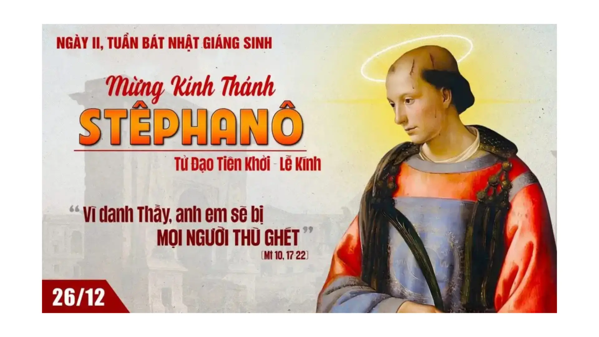 NGÀY 26 THÁNG 12 – LỄ THÁNH STÊPHANÔ TỬ ÐẠO (Mt 10,17-22) Hôm nay chúng ...