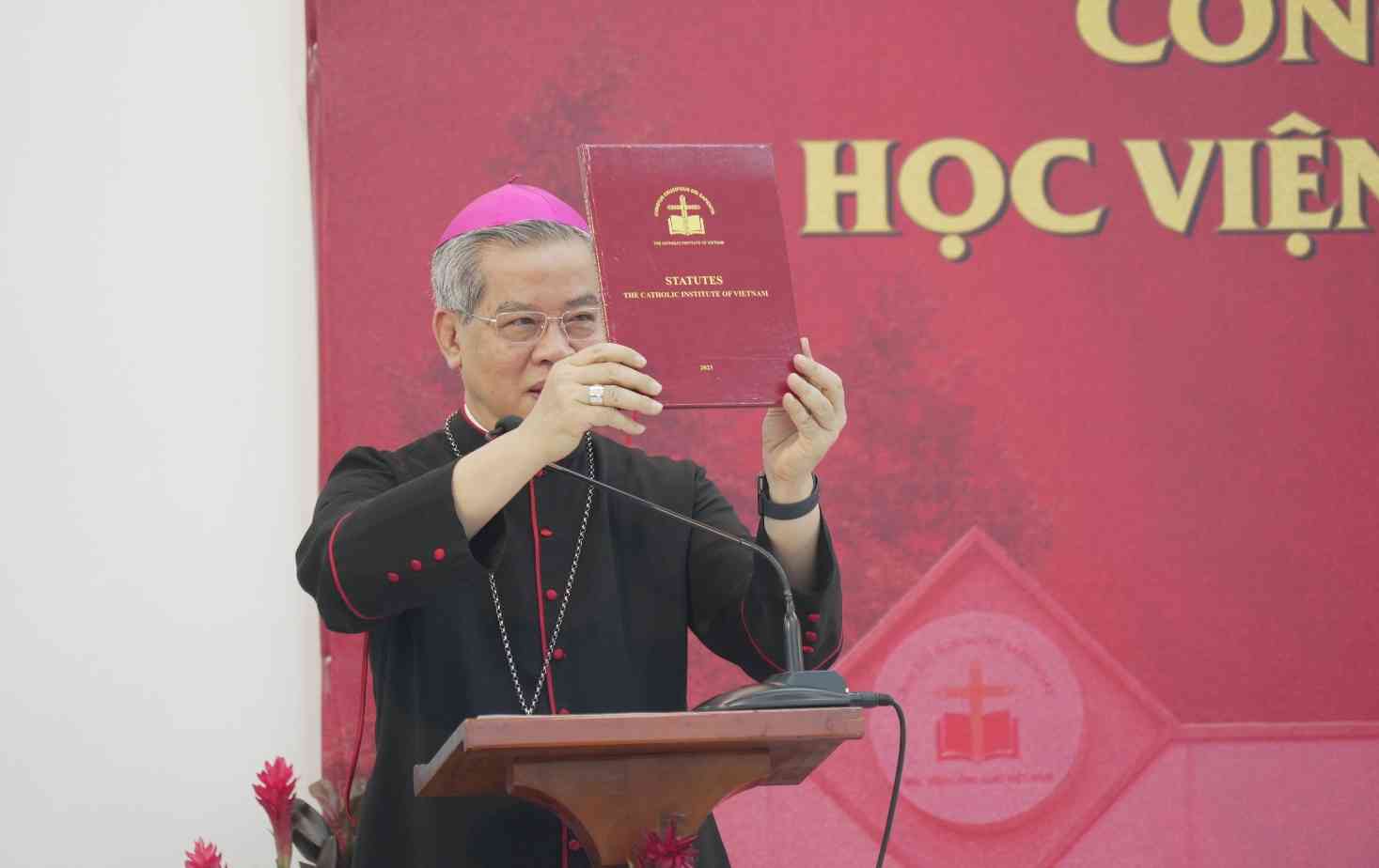 “Quy chế của Học Viện đã hình thành cách đây mấy năm nhưng nay mới được chấp nhận. Như vậy, ngôi nhà Học Viện đã được chính thức thành lập theo đúng quy chuẩn của một trường Đại Học. Đây thực chất là một Đại Học, và Giáo Hội đang chờ đợi các học viên. Đây phải là một Đại học cổ võ suy tư Thần học, đáp ứng việc hội nhập văn hoá và đào sâu Đức Tin. Mỗi học viên đến đây phải có khả năng suy tư, biểu tỏ đức tin của mình theo cách của Việt Nam.” Đại diện cho HĐ GMVN, Đức TGM dâng lời tạ ơn Chúa vì thành quả tốt đẹp này.