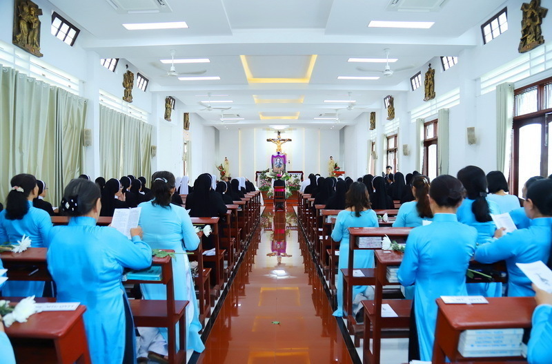 Lúc 15g00, nghi thức bắt đầu với kinh Chúa Thánh Thần. Hiện diện trong nghi thức có cha Giuse Trương Đình Hiền, Tổng Đại diện Giáo phận Qui Nhơn; cha Phaolô Nguyễn Minh Chính, Chưởng ấn Giáo phận Qui Nhơn; cha Phêrô Nguyễn Thanh Tùng, Cáo thỉnh viên Ban Hồ sơ Phong Thánh, quý nữ tu trong Ban Hồ sơ Phong Thánh của Hội đồng Giám mục Việt Nam cùng đông đảo nữ tu thuộc Hội dòng Mến Thánh Giá Qui Nhơn và anh chị em Hiệp hội Tín hữu Mến Thánh Giá của Hội dòng từ khắp các nơi quỵ tụ về.