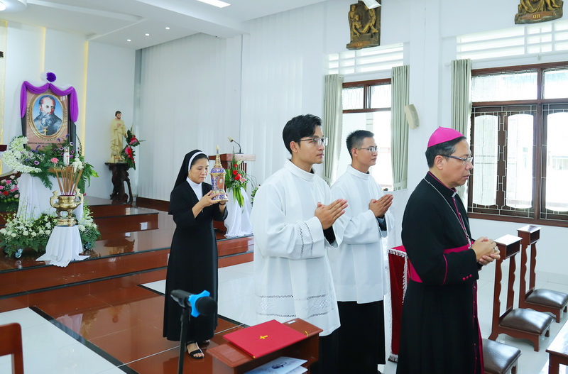 Trước bàn thờ Hài cốt Đức cha Lambert, cha Tổng Đại diện Giáo phận Qui Nhơn; Phó ban đặc trách Hồ sơ Phong Thánh cho Đức cha Lambert, hai cha phụ tế cùng với hai chị : Anna Nguyễn Thị Yến Trâm; Tổng Phụ trách Hội dòng Mến Thánh Giá Qui Nhơn và chị Anna Nguyễn Thị Thanh; Phó ban đặc trách Hồ sơ Phong Thánh, đã cử hành nghi thức với bài Văn tế tưởng niệm, những lời cầu nguyện sốt sắng, những nén hương nghi ngút khói được dâng lên… Kết thúc nghi thức tưởng niệm, cả cộng đoàn đọc chung kinh Xin ơn nhờ lời chuyển cầu của Đức cha Lambert.