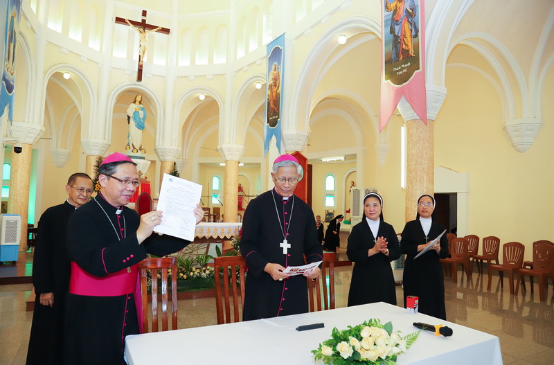 Thủ tục ký vào biên bản giao – nhận được thực hiện trên cung thánh của Nhà thờ. Đồng ký biên bản này có đại diện của Hội dòng Mến Thánh Giá Qui Nhơn và đại diện Tòa Giám mục Qui Nhơn. Biên bản được lập thành 4 bản, Tòa Giám mục Qui Nhơn lưu giữ 1 bản, trao cho Hội dòng Mến Thánh Giá Qui Nhơn lưu giữ 1 bản và trao cho Đức cha Giuse Đỗ Mạnh Hùng (Ban Hồ sơ Phong Thánh của Hội đồng Giám mục Việt Nam) lưu giữ 2 bản.