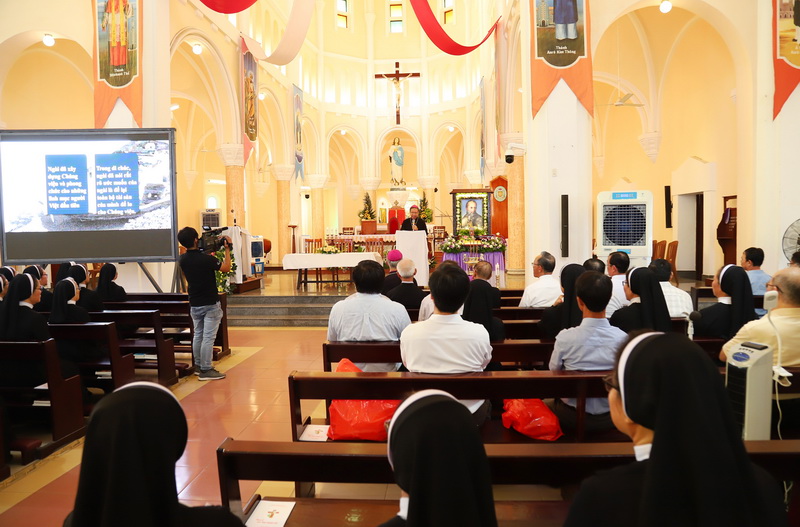 Trước khi bước vào nghi thức Tưởng niệm tại Nhà thờ Chính Tòa là phần chào đón và giới thiệu quý Đức cha, quý cha, quý Soeurs trong Ban Hồ sơ Phong Thánh. Tiếp theo là bài chia sẻ của Đức cha Giuse Đỗ Mạnh Hùng về chân dung của Đức cha Lambert và những công trình quý giá của người dành cho Giáo hội Việt Nam với những “hoa trái thánh thiện”.