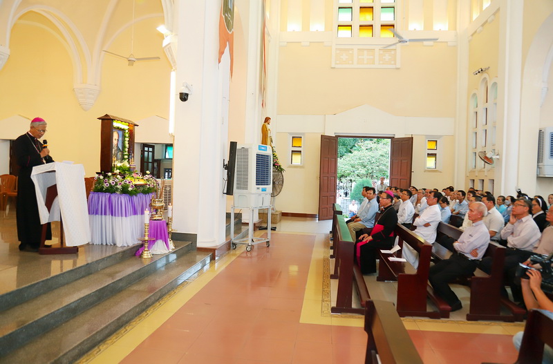 Trước khi ban Phép lành kết lễ, Đức cha Matthêô mời gọi cộng đoàn siêng năng đến kính viếng, cầu nguyện và xin ơn nhờ lời chuyển cầu của Đức cha Lambert.
