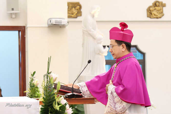 Sau các bài Thánh thi, Ca vịnh và Lời Chúa, ĐGM Đaminh đã nói lên sứ vụ chính yếu của Giám mục là cầu nguyện, hy sinh, hiến tế và phục vụ như “một nàng dâu phải phục vụ nghìn họ”, rất vất vả nhưng luôn có sự đồng hành của Chúa và cộng đoàn.