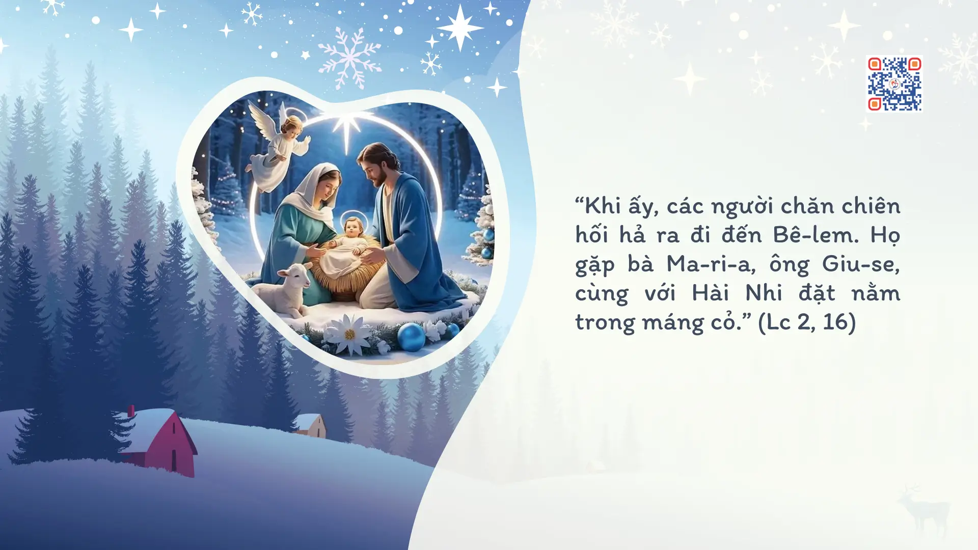 “Khi ấy, các người chăn chiên hối hả ra đi đến Bê-lem. Họ gặp bà Ma-ri-a, ông Giu-se, cùng với Hài Nhi đặt nằm trong máng cỏ.” (Lc 2, 16)