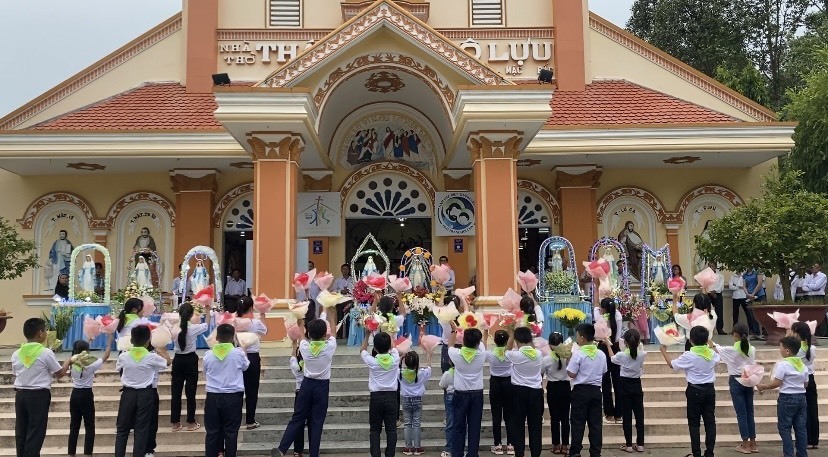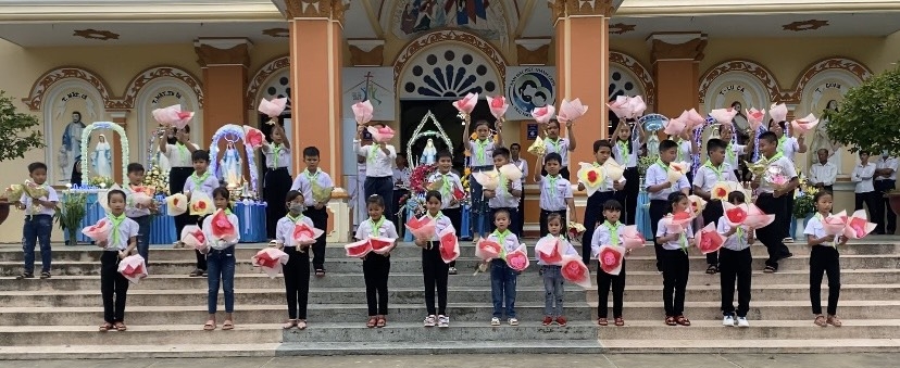 Lạy Mẹ Maria! Tháng Mân Côi đã về, văng vẳng đâu đó lời kinh KÍNH MỪNG vang lên từ các cuộc rước kiệu, những bài hát chất chứa tình yêu của con cái dành cho Mẹ, những điệu múa tâm tình của các em thiếu nhi và hàng trăm con cái Mẹ ở khu vực nhà thờ Ba Giồng, Cây Gòn thuộc hạt Mặc Bắc đã dâng lên Mẹ vào chiều ngày thứ Bảy, ngày 01 tháng 10 vừa qua, trong thánh Lễ khai Mạc tháng Mân Côi để chiêm ngắm, tôn vinh và yêu mến Mẹ Maria.