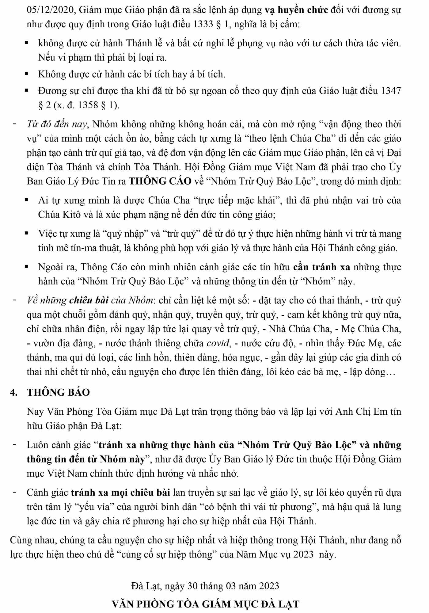 Thư Chung Năm 2025 Của Hội Đồng Giám Mục Việt Nam Về Sứ Mạng Loan Báo Tin Mừng