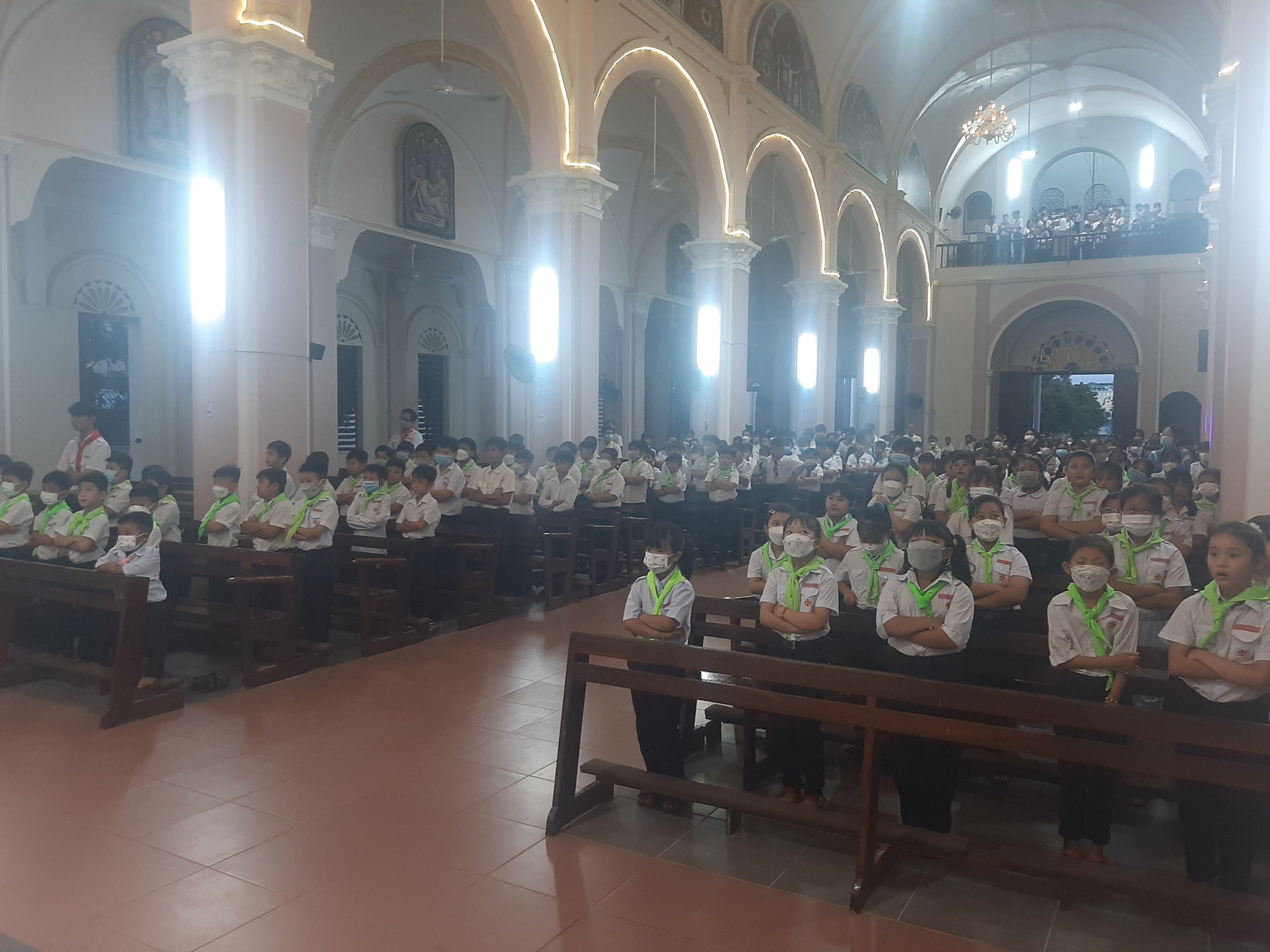Vào lúc 17h, tiếng chuông nhà thờ Mặc Bắc đã vang lên như lời mời gọi của Chúa Kitô, khắp các khu vực Nhà Thờ: Ba Giồng, Ngọn, Định Thuận, Lộ Mới, Bàu Hoang và tại Mặc Bắc, hàng trăm em thiếu nhi nô nức quy tụ về để cùng tạ ơn Chúa, trong Thánh lễ đồng tế của Quý cha phụ trách thiếu nhi nhân dịp tết Trung Thu. Mặc cho thời tiết không thuận lợi vì những cơn mưa kéo dài.