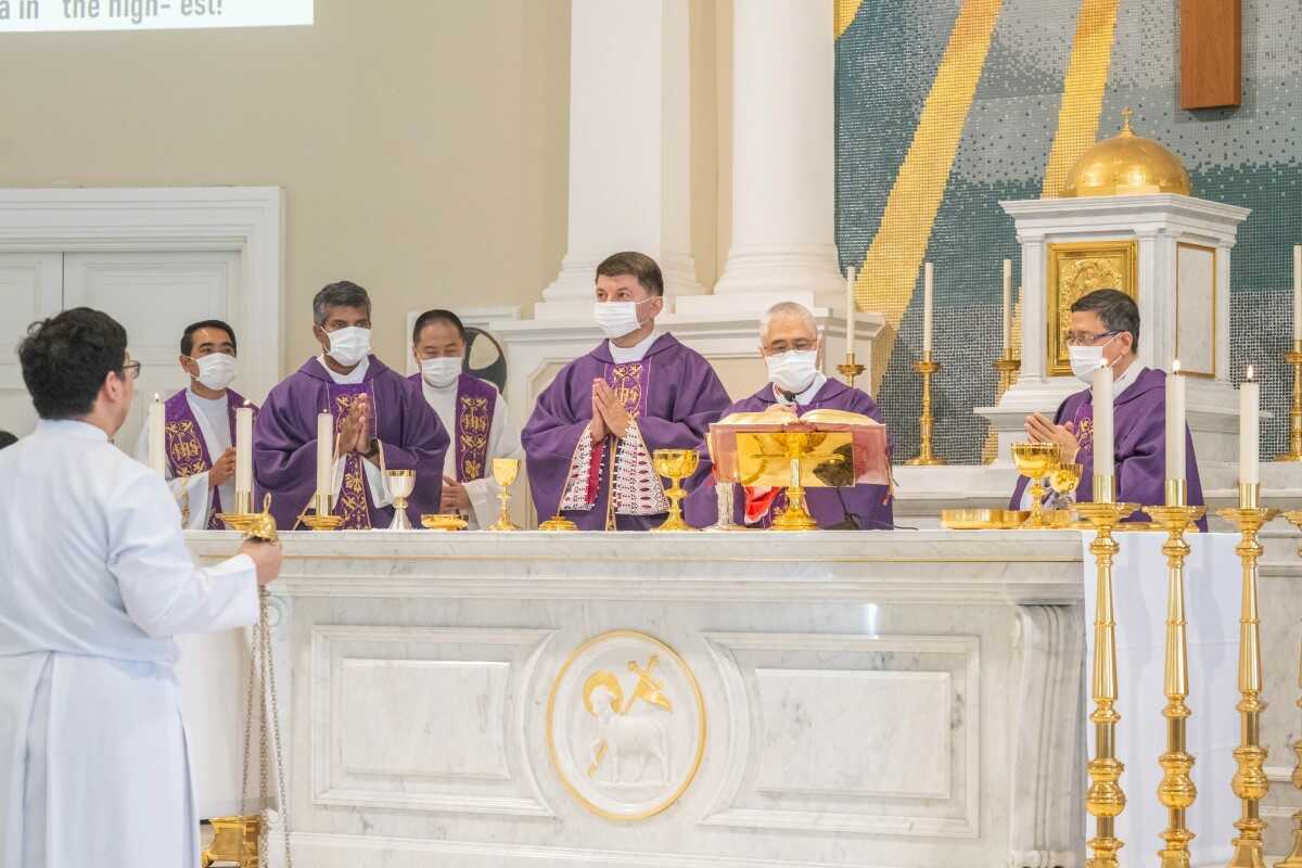 Đức cha TTK: Do sự sắp xếp hết sức chu đáo và tình cảm của Đức Sứ Thần Tòa Thánh tại Singapore, tôi và cha Vũ đã có dịp đến dâng lễ với quý Cha và anh chị em Việt Nam tại giáo xứ Immaculate Heart of Mary (IHM) vào chiều ngày Chúa nhật, 12 tháng 3. Đồng hành với cộng đoàn Việt Nam tại đây có 3 linh mục thuộc Hội Thừa Sai Paris, đang làm việc tại Singapore: cha Grégoire Giảng, cha Gioan Đích, cha Phaolô Phong. Cùng chung tâm tình hiệp thông với Giáo Hội Singapore để cầu nguyện cho Đức Thánh cha Phanxicô, Thánh lễ này cũng diễn tả sự hiệp thông giữa giám mục Việt Nam và anh chị em Việt Nam đang sống, học tập và làm việc xa quê hương.