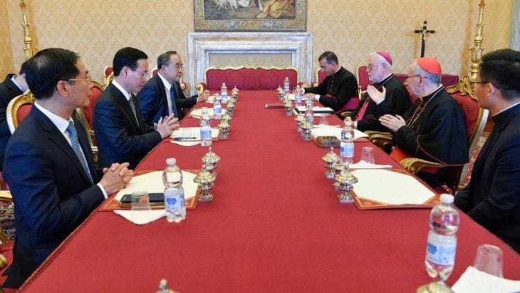 Vatican News (27.07.2023) – Thông cáo chung giữa Việt Nam và Tòa Thánh, được công bố chiều ngày 27/7/2023, cho biết hai bên đã ký kết “Thỏa thuận về Quy chế của Đại diện Thường trú của Tòa Thánh và về Văn phòng Đại diện Thường trú của Tòa Thánh tại Việt Nam”. Trước đó, Đức Thánh Cha Phanxicô đã tiếp ông Võ Văn Thưởng, Chủ tịch nước Cộng hòa Xã hội Chủ nghĩa Việt Nam.
